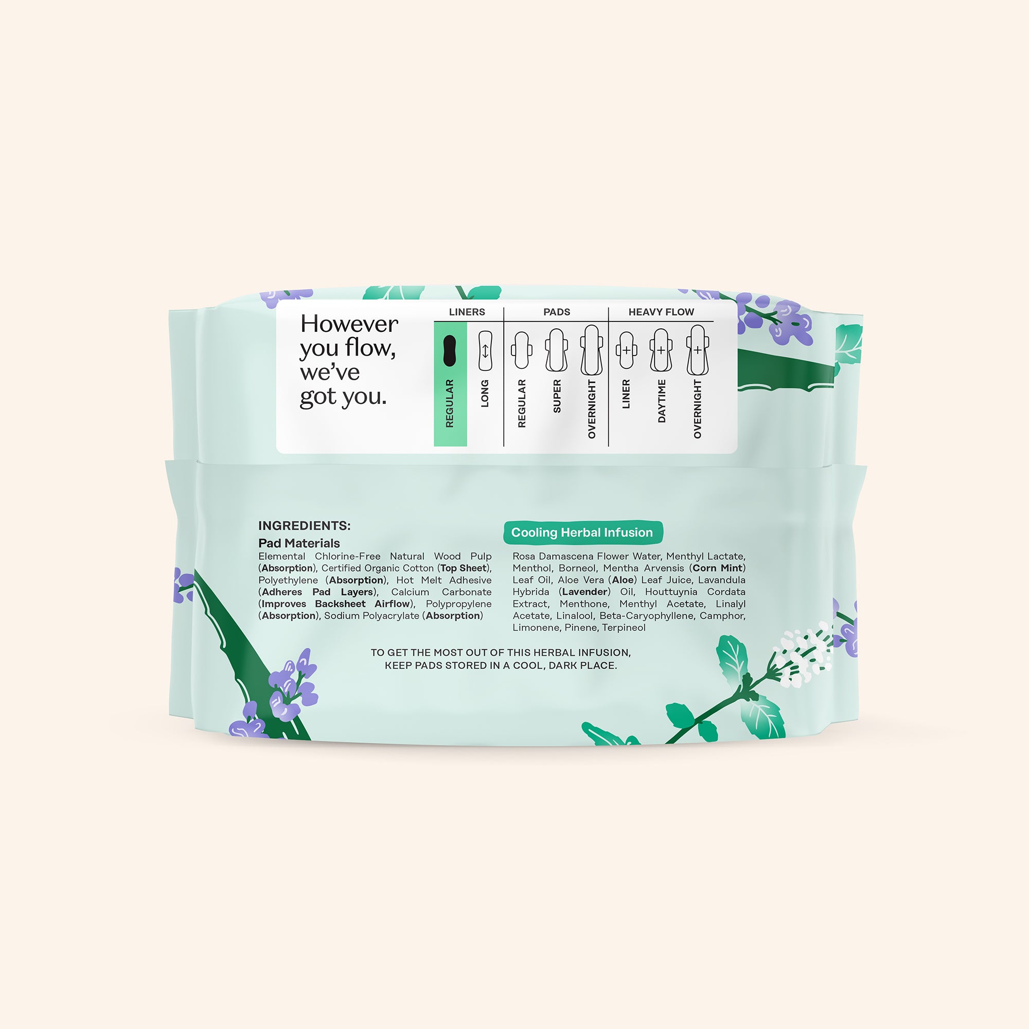 Our Cooling Herbal Infusion Liners are designed with an ultra-absorbent core for leak-proof protection you can trust, and they’re made without added synthetic fragrances, pesticides, and chlorine