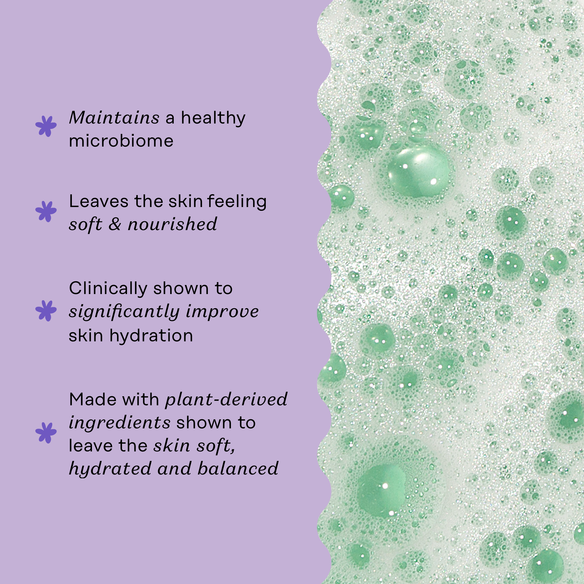This indulgent, moisture-rich formula is powered by our Herbal Hydration Serum, including Marshmallow Root, Asparagus Root and lactic acid that is shown to be gentle and not strip the skin of moisture. The clean, bright, calming botanical scent of Lavender Chamomile is created to be an inviting part of your shower ritual without disrupting your natural skin barrier. This sensitive solution is made for all skin types and helps maintain a healthy skin microbiome. Intentionally made without PEGS, Dioxane, Mineral Oils, Petroleum, Added Parabens, Sulfates and any conventional fillers.